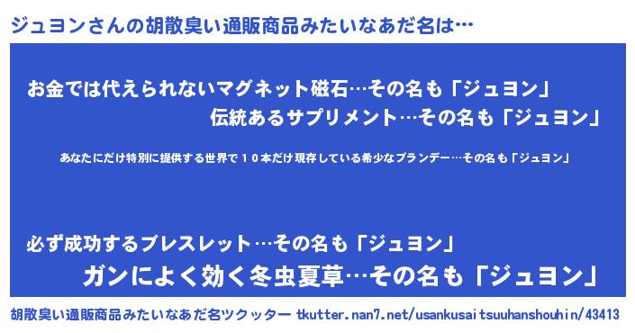 | 意味不明あだ名 | 『住所不定無職ジュヨン(85歳)』 |