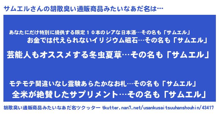 | 意味不明あだ名 | 『自称サムエル』『ペロリンサムエル』 |
