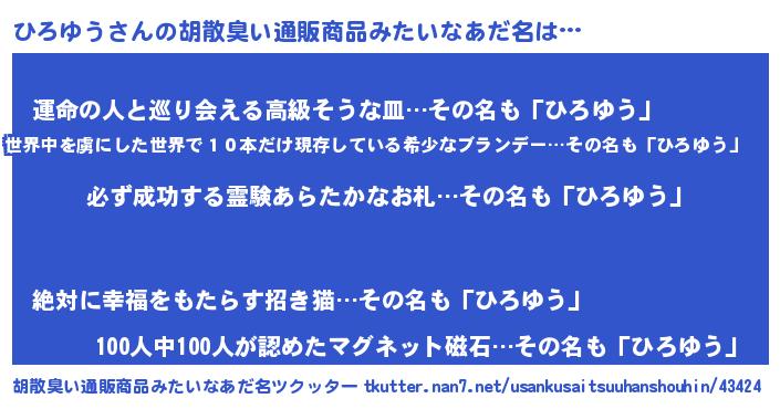 | ヒーロー風カッコイイあだ名 | 『スーパーヒロユウ』『仮面ヒロダー』 |