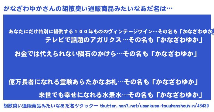 | ヘコむあだ名 | 『かなざわゆか(震え声)』『かなっふぃ~』 |