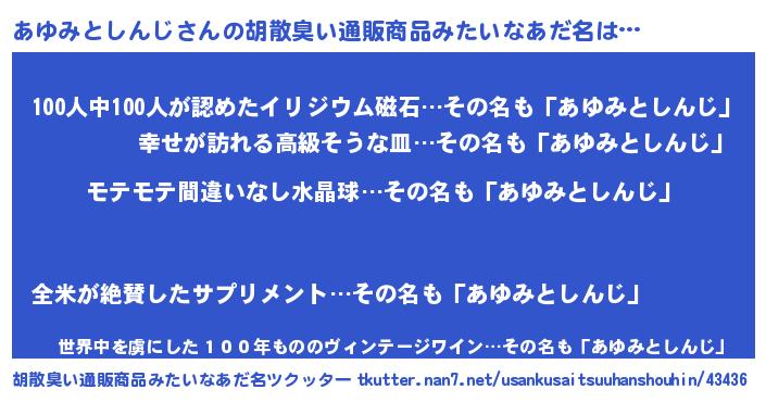 | ヒーロー風カッコイイあだ名 | 『スーパーアユミトシンジ』 |