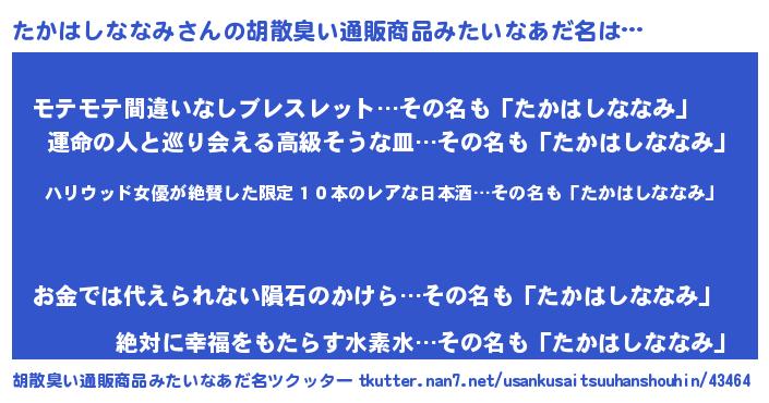 | 意味不明あだ名 | 『住所不定無職たかはしななみ(40歳)』 |