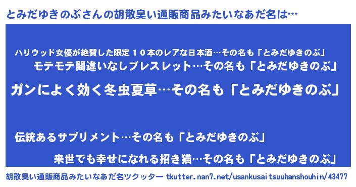 | ヘコむあだ名 | 『とみだゆきのぶ(震え声)』『とみにゅー』 |