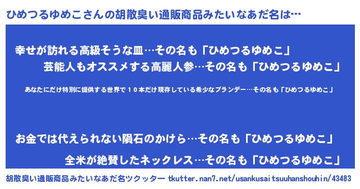 | 意味不明あだ名 | 『住所不定無職ひめつるゆめこ(79歳)』 |
