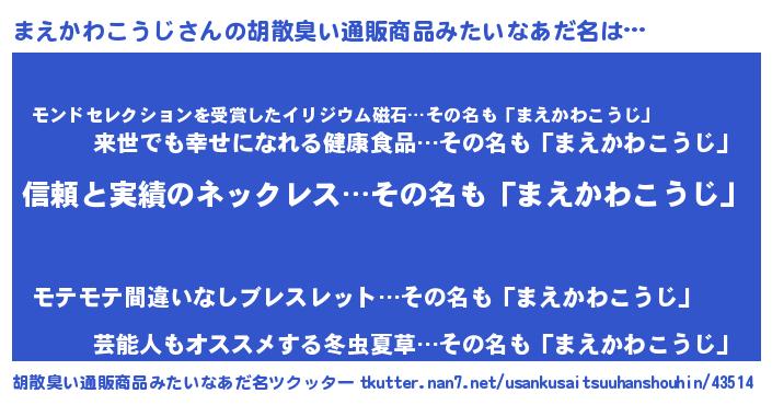 | ヘコむあだ名 | 『まえっ子』『まえかわこうじ(笑)』 |