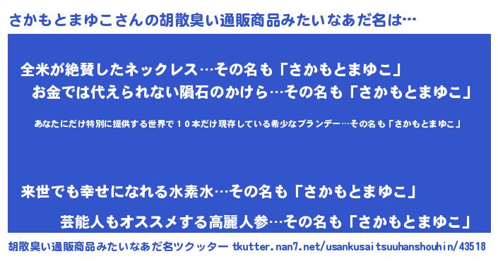 | ヘコむあだ名 | 『さかっぺ』『さかもとまゆこ(小並感)』 |