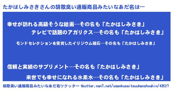 | ヘコむあだ名 | 『酢こんぶ』『たかはしみさき(笑)』 |