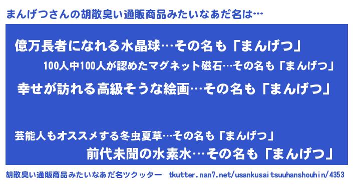 | 意味不明あだ名 | 『まんげつフォーエバー』 |