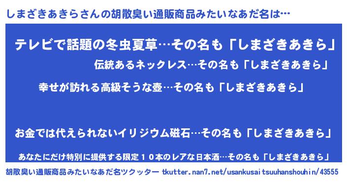 | 伝説のあだ名 | 『秘められし忍者しまざきあきら』 |