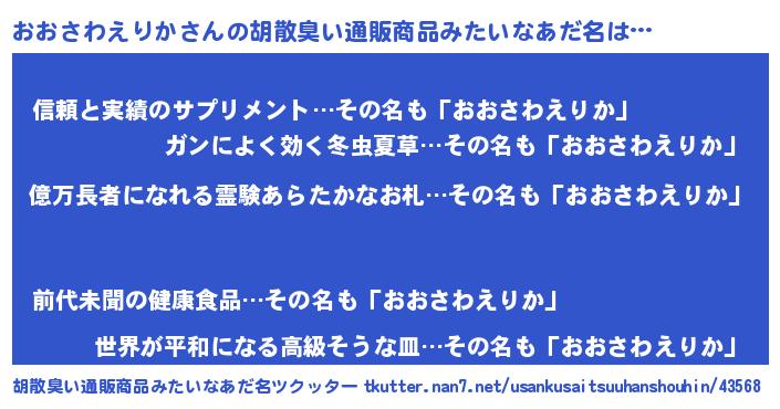 | 伝説のあだ名 | 『封印されしスナイパーおおさわえりか』 |