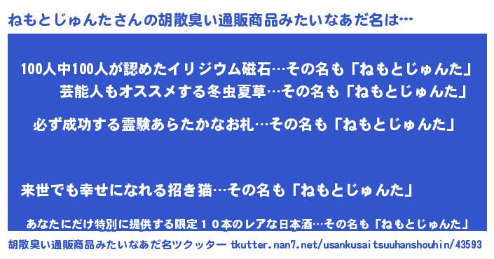 | ヘコむあだ名 | 『ねももー』『ねもとじゅんた(笑)』 |