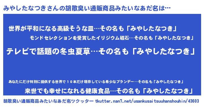 | 意味不明あだ名 | 『自称みやしたなつき』 |