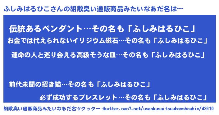 | 意味不明あだ名 | 『ふしみはるひこフォーエバー』 |