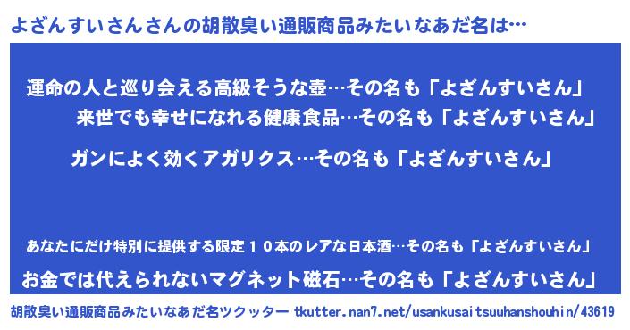 | 意味不明あだ名 | 『自称よざんすいさん』 |