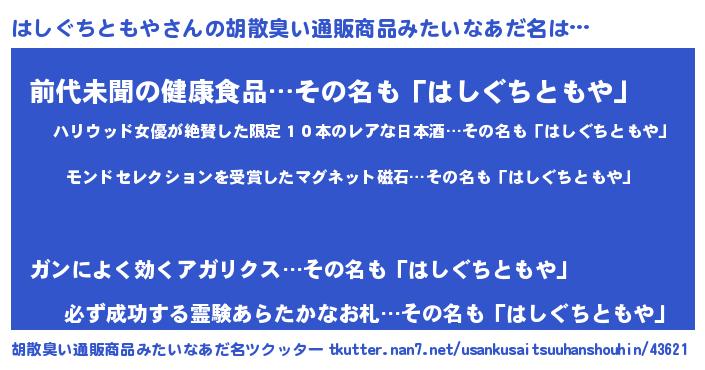 | 可愛いあだ名 | 『はしちゅっちゅ』『はしぐちともやママ』 |