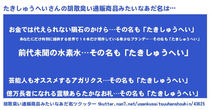 | 意味不明あだ名 | 『永久保存たきしゅうへい』 |