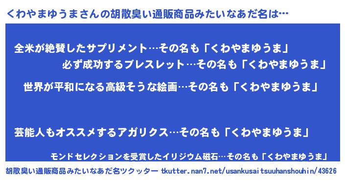 | 肩書あだ名 | 『くわやまゆうま総理大臣』 |