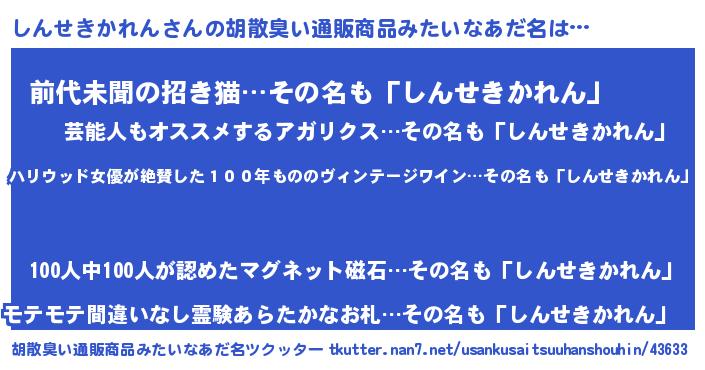 | ヘコむあだ名 | 『しんせきかれん(笑)』『しんふぇ~』 |