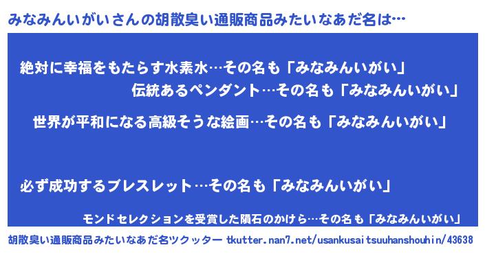 | ヘコむあだ名 | 『豆乳』『みなみんいがい(笑)』 |