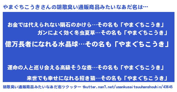 | ヘコむあだ名 | 『やまもー』『やまぐちこうき(笑)』 |