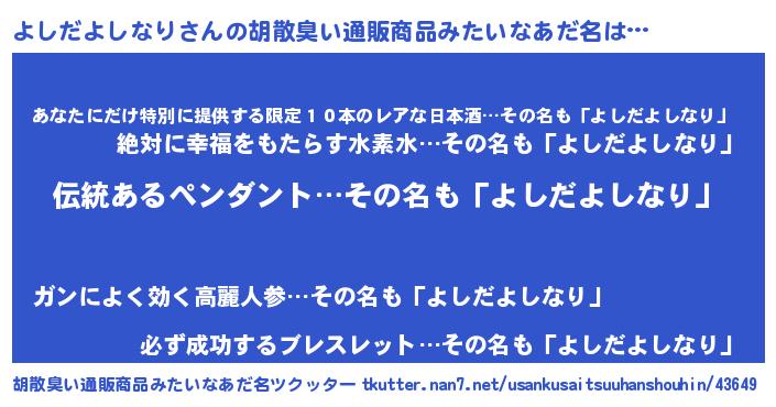 | 意味不明あだ名 | 『とにかく怪しいよしだよしなり』 |