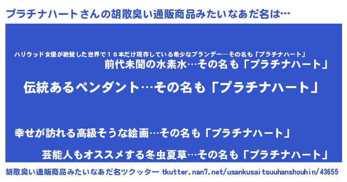 | ヘコむあだ名 | 『プラっちょ』『プラチナハート(小並感)』 |
