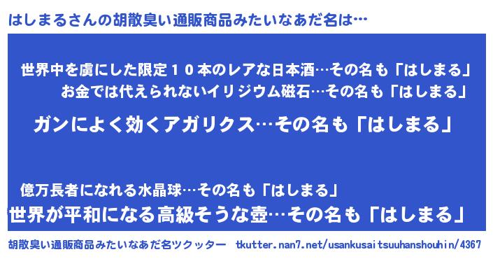 はしまるさんの胡散臭い通販商品みたいなあだ名をツクッター!