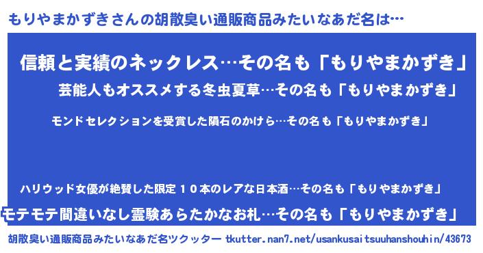 | 伝説のあだ名 | 『救世主となる錬金術士もりやまかずき』 |