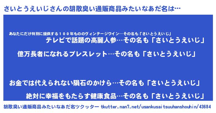 | ヘコむあだ名 | 『さいふぇ~』『さいとうえいじ(笑)』 |