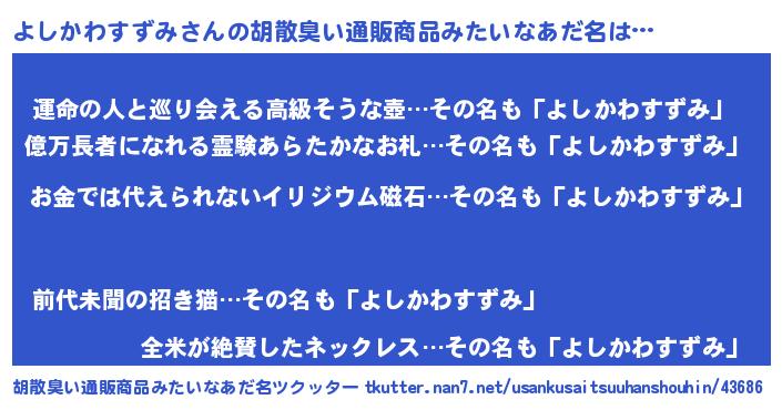 | ヒーロー風カッコイイあだ名 | 『慈愛の使者よしかわすずみ』 |