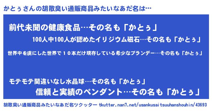 | 意味不明あだ名 | 『住所不定無職かとぅ(98歳)』 |