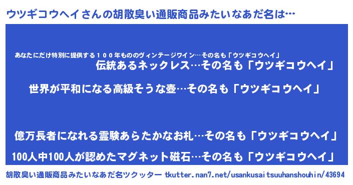 | ヒーロー風カッコイイあだ名 | 『ウルトラウツギコウヘイマン』 |