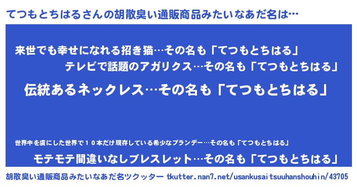 | 意味不明あだ名 | 『とにかく怪しいてつもとちはる』 |