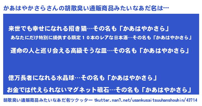 | ヘコむあだ名 | 『酢こんぶ』『かあはやかさら(笑)』 |