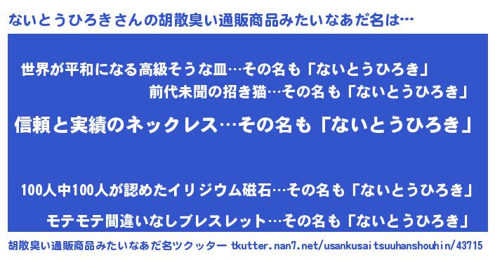 | 意味不明あだ名 | 『とにかく怪しいないとうひろき』 |