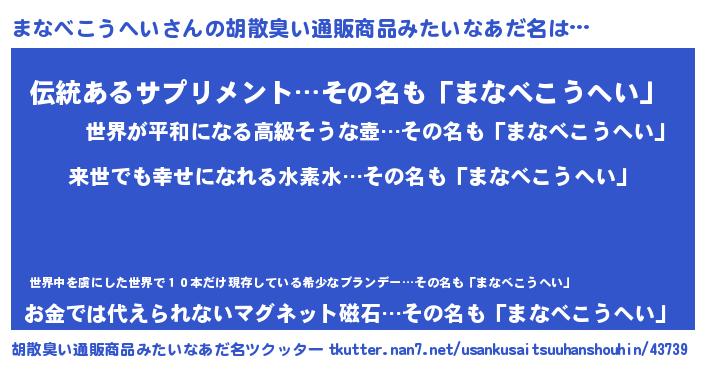 | 意味不明あだ名 | 『永久保存まなべこうへい』 |