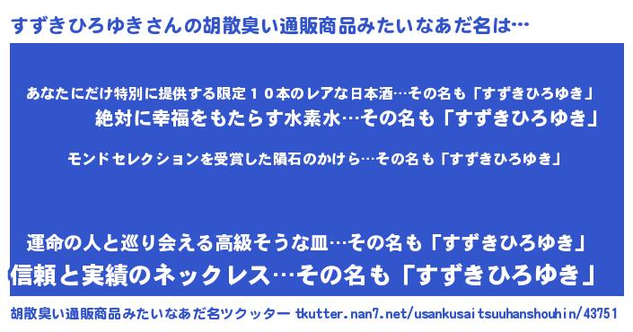 | ヘコむあだ名 | 『すずぷりん』『すずきひろゆき(笑)』 |
