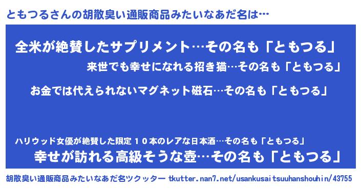 | ヒーロー風カッコイイあだ名 | 『友情の使者ともつる』『天弓騎士トモ』 |