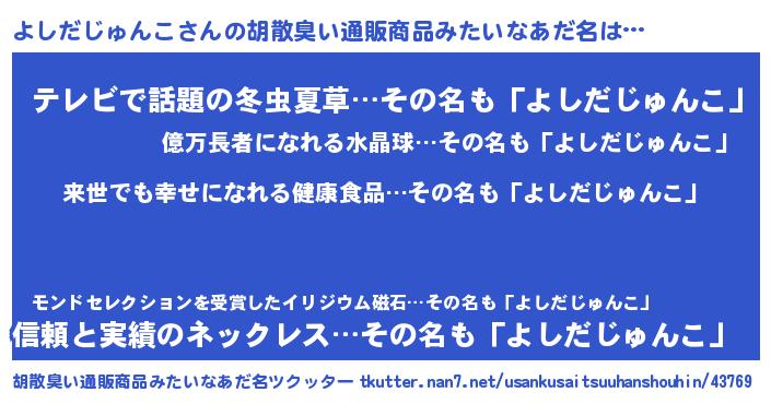 | ヘコむあだ名 | 『よしだじゅんこ(笑)』『よしぷりん』 |