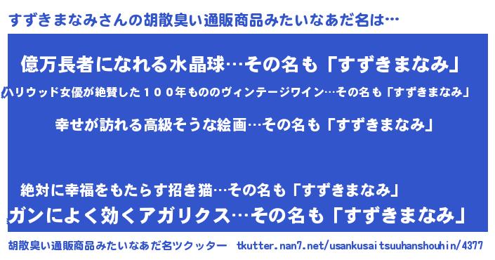 | 男性向けラノベタイトル風あだ名 | 『やはりすずきまなみの青春ラブコメはまちがっている 』 |