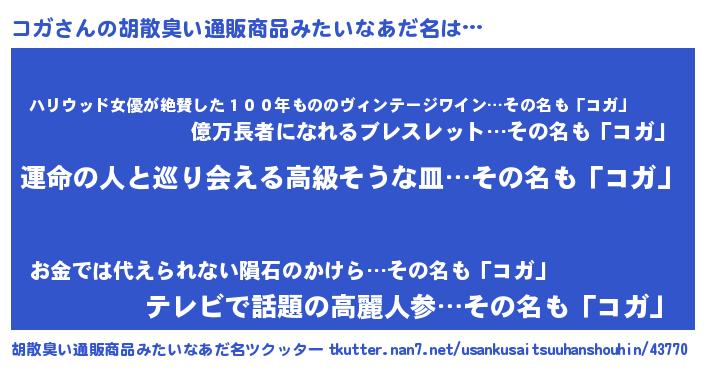 | 意味不明あだ名 | 『コガフォーエバー』『自称コガ』 |