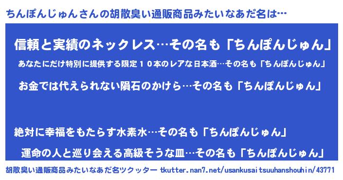 | 欧米人風あだ名 | 『ダニエルちんぽんじゅん』 |