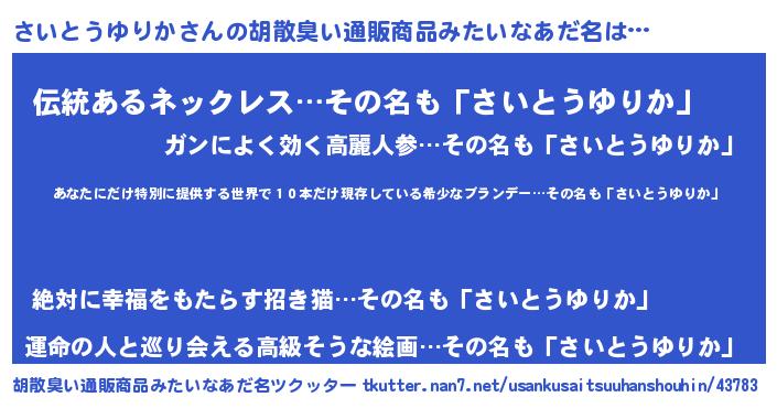 | 伝説のあだ名 | 『覚醒した遊び人さいとうゆりか』 |