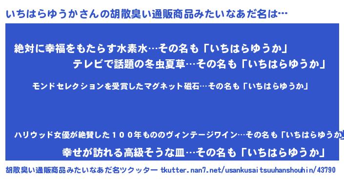 | ヘコむあだ名 | 『いちはらゆうか(小並感)』『つくし』 |
