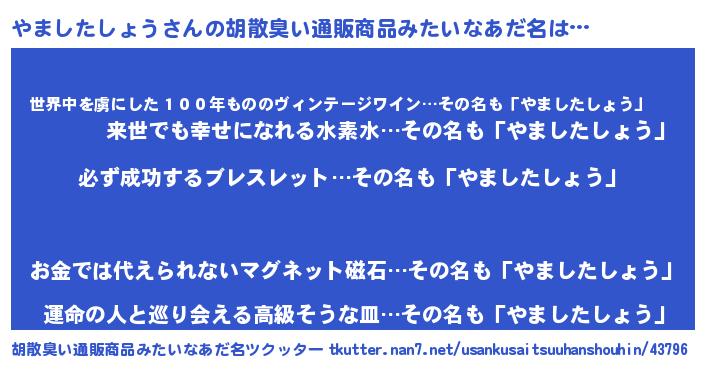 やましたしょうさんの胡散臭い通販商品みたいなあだ名をツクッター!