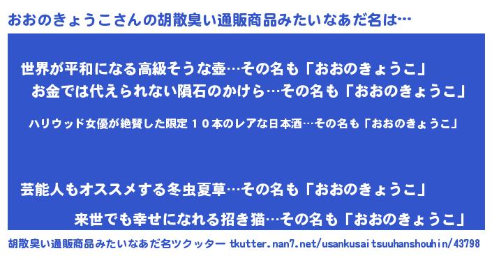 | 伝説のあだ名 | 『秘められし忍者おおのきょうこ』 |