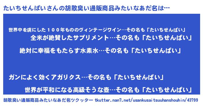 | ヘコむあだ名 | 『たいちせんぱい(震え声)』『豆乳』 |