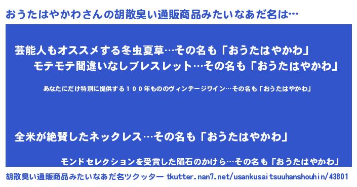 | 欧米人風あだ名 | 『ダレノガレおうたはやかわ』 |