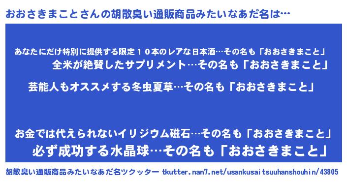 | 意味不明あだ名 | 『自称おおさきまこと』 |