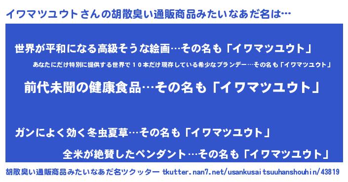 | 欧米人風あだ名 | 『トリンドルイワマツユウト』 |